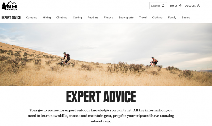 1. REI’s “Expertenrat”-Abschnitt über ein großartiges Beispiel für B2C-SEO-Marketing