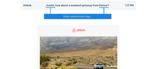 Airbnb nutzt in ihren Marketing-E-Mails eine einfache Form der Personalisierung, indem es die Kontaktdaten, den Heimatort und Verhalten auf der Hauptwebsite nutzt. Das Endprodukt ist eine E-Mail, die den Kunden mit seinem Namen anspricht und einen Ausflug zu den beliebtesten Zielen von Ihrer Heimatstadt aus unternehmen.