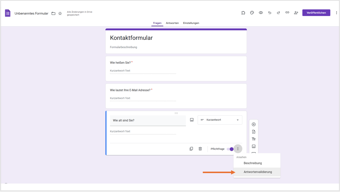Wie Sie eine Antwortvalidierung in Google Formulare hinzufügen