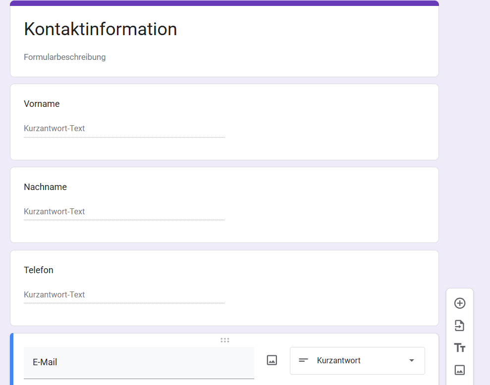 Bevor wir beginnen, lassen Sie uns ein einfaches Kontaktformular erstellen. Es sollte Namen, Telefonnummer, E-Mail-Adresse und Adresse erfassen.