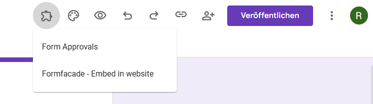 Sie können Formfacade verwenden, indem Sie es im Add-ons-Symbol im oberen rechten Menü auswählen.