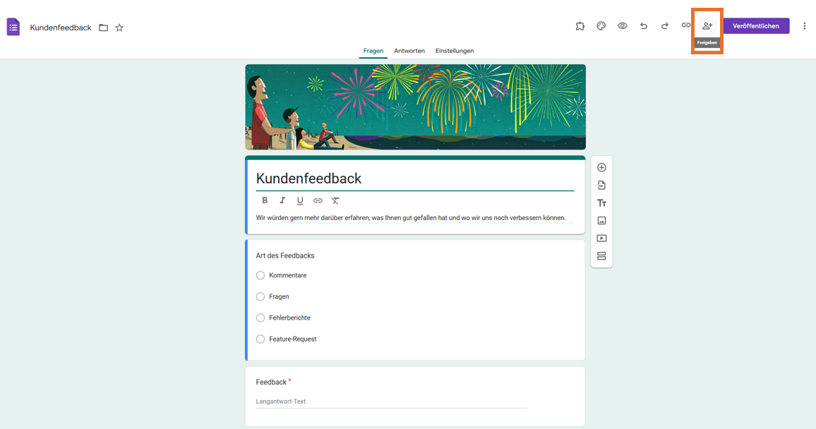 - Klicken Sie auf den Button Freigeben in der oberen rechten Ecke.