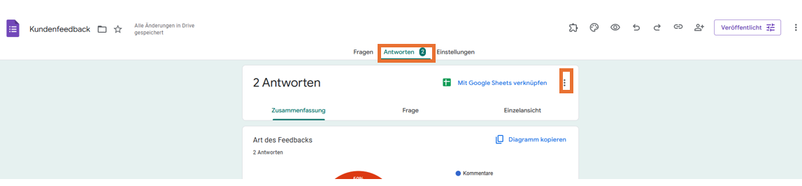 - Gehen Sie zu Ihrem Google-Formular und klicken Sie oben auf die Registerkarte Antworten.