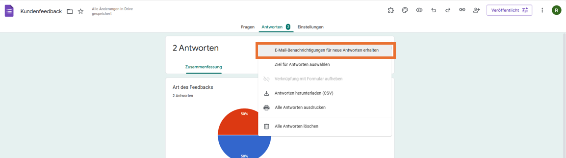 Option 1: E-Mail-Benachrichtigungen für Formularantworten aktivieren