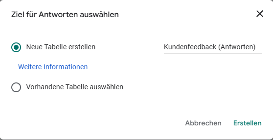 Option 3: Google Formulare-Antworten an ein Google Sheet senden