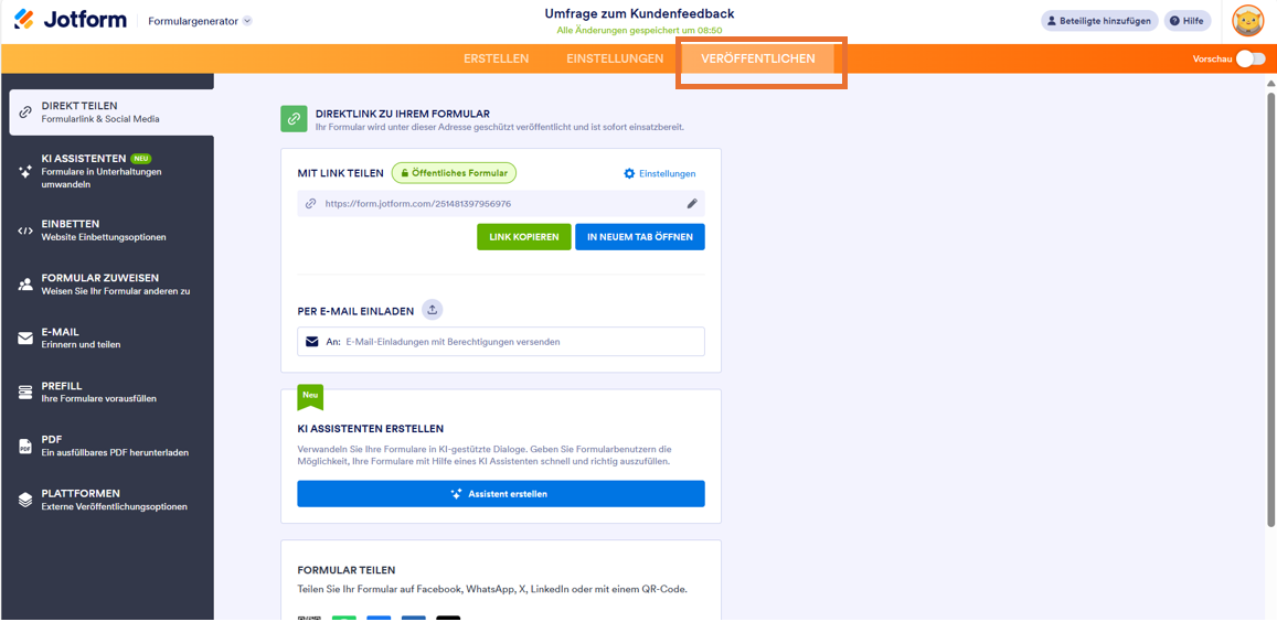 - Sobald Sie das Formular angepasst haben, klicken Sie auf Veröffentlichen.