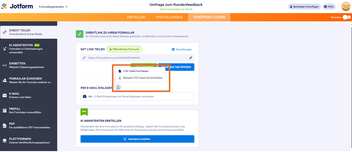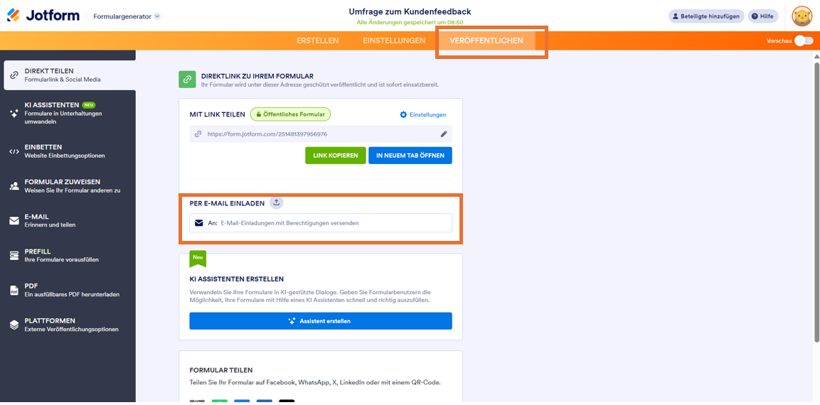 Das war’s! Sie haben erfolgreich ein Formular mit Jotform erstellt und es per E-Mail an Ihre Teilnehmer gesendet.