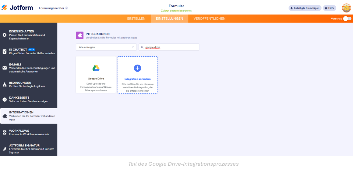 Wir lieben diese Integration, denn wenn Sie Google Drive mit Ihren Formularen synchronisieren, werden alle Übermittlungsdaten automatisch in Ihren Drive-Ordner eingefügt, sodass für Sie keine zusätzliche Arbeit anfällt.