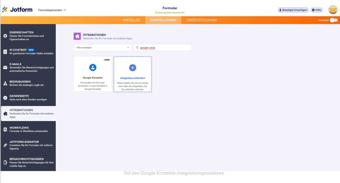 Wenn Ihre Organisation bereits Google Workspace nutzt, ist die Integration Ihrer Formulare mit Google Kontakte eine einfache Möglichkeit, die Kontakte Ihrer Organisation an demselben Ort wie alle anderen Unternehmensmaterialien zu halten.