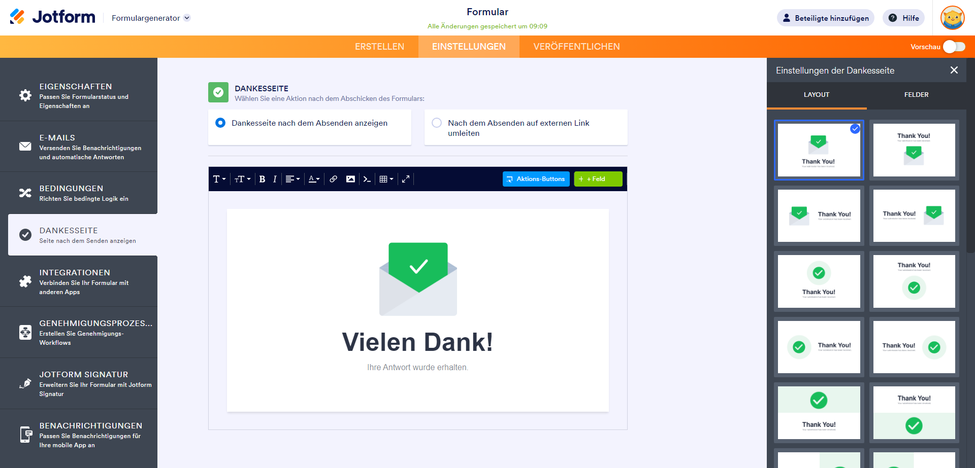 Diese Anleitung bezieht sich auf das klassische Formular-Layout. Wenn Ihr Formular im Karten-Layout ist, lesen Sie Wie Sie die Dankeseite in Karten-Formularen ändern.