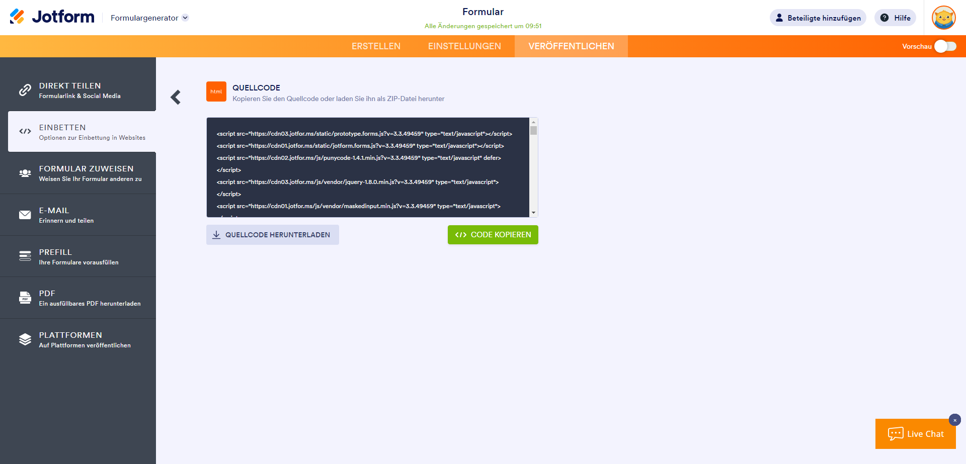 In dieser Anleitung werden alle in Jotform verfügbaren Einbettungsoptionen vorgestellt. Sie finden sie auf der Registerkarte Veröffentlichen des Formular-Generators.