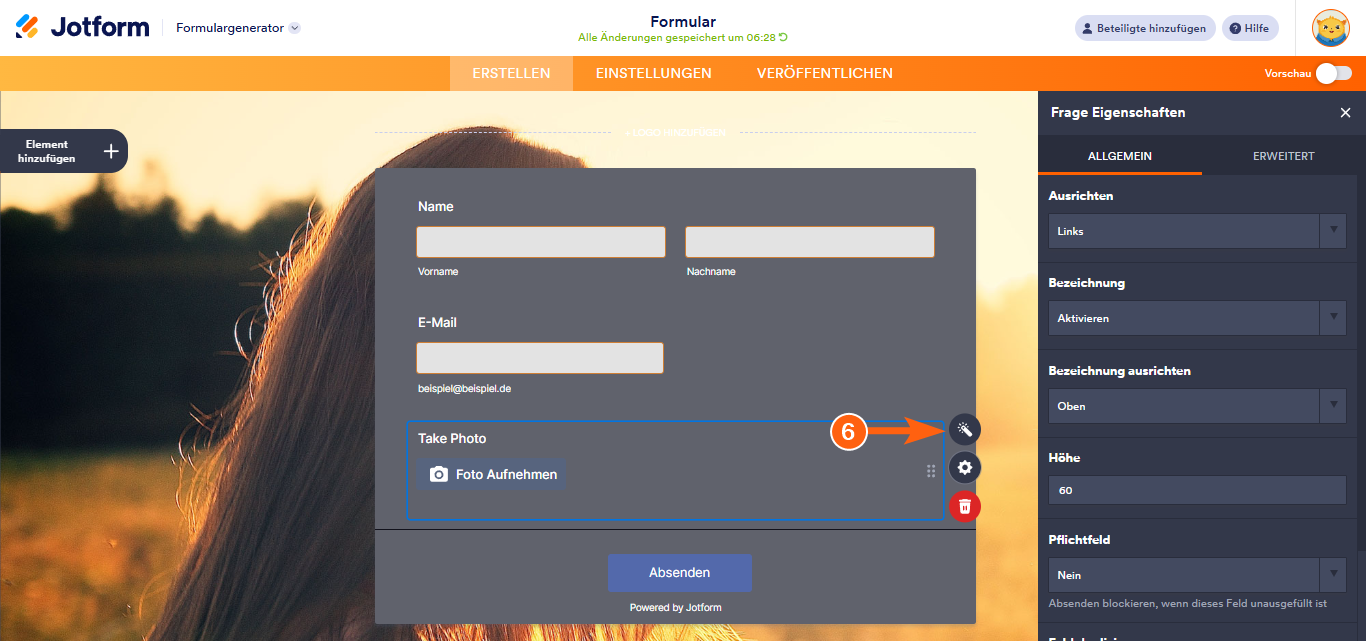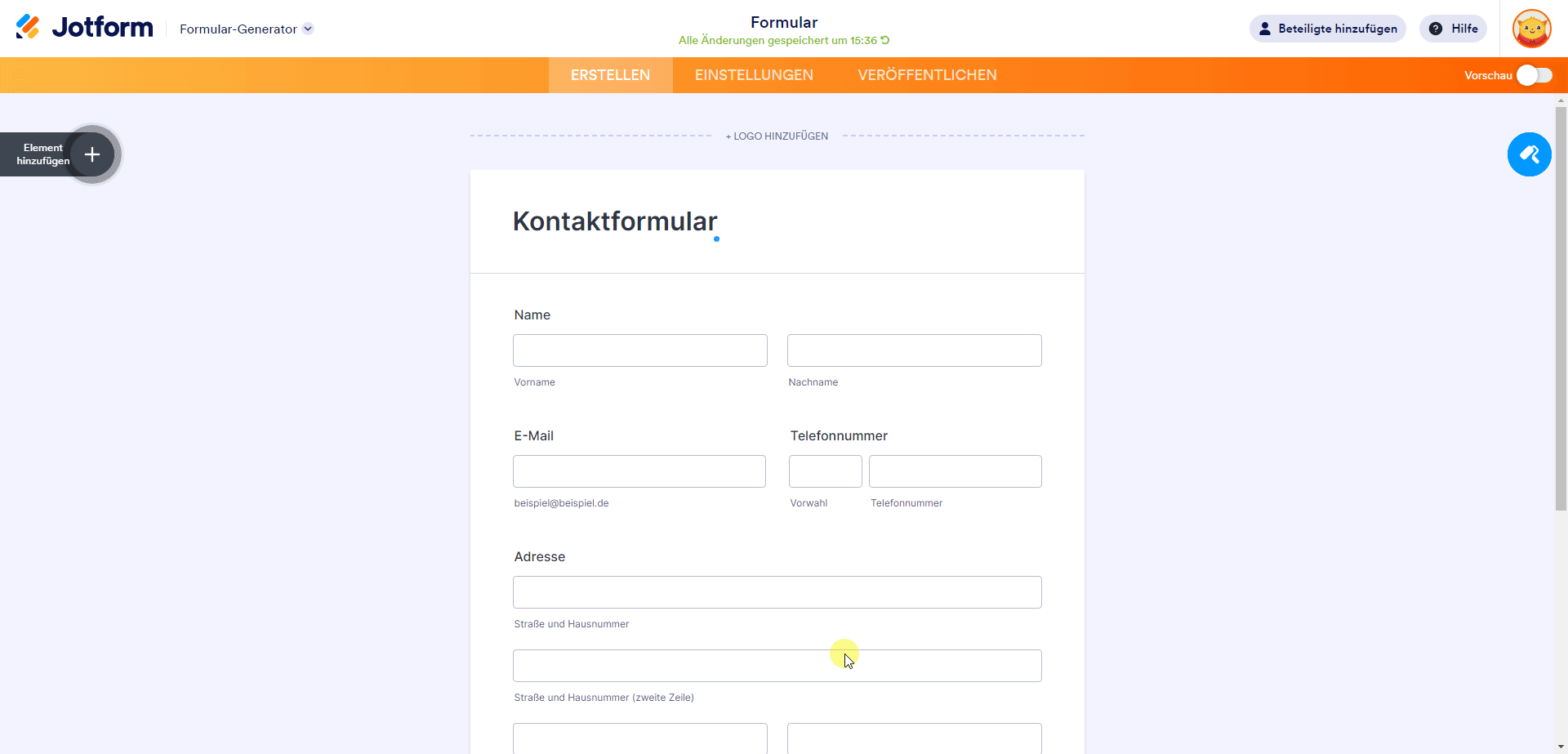 - Klicken Sie im Formular-Generator links auf Element hinzufügen.