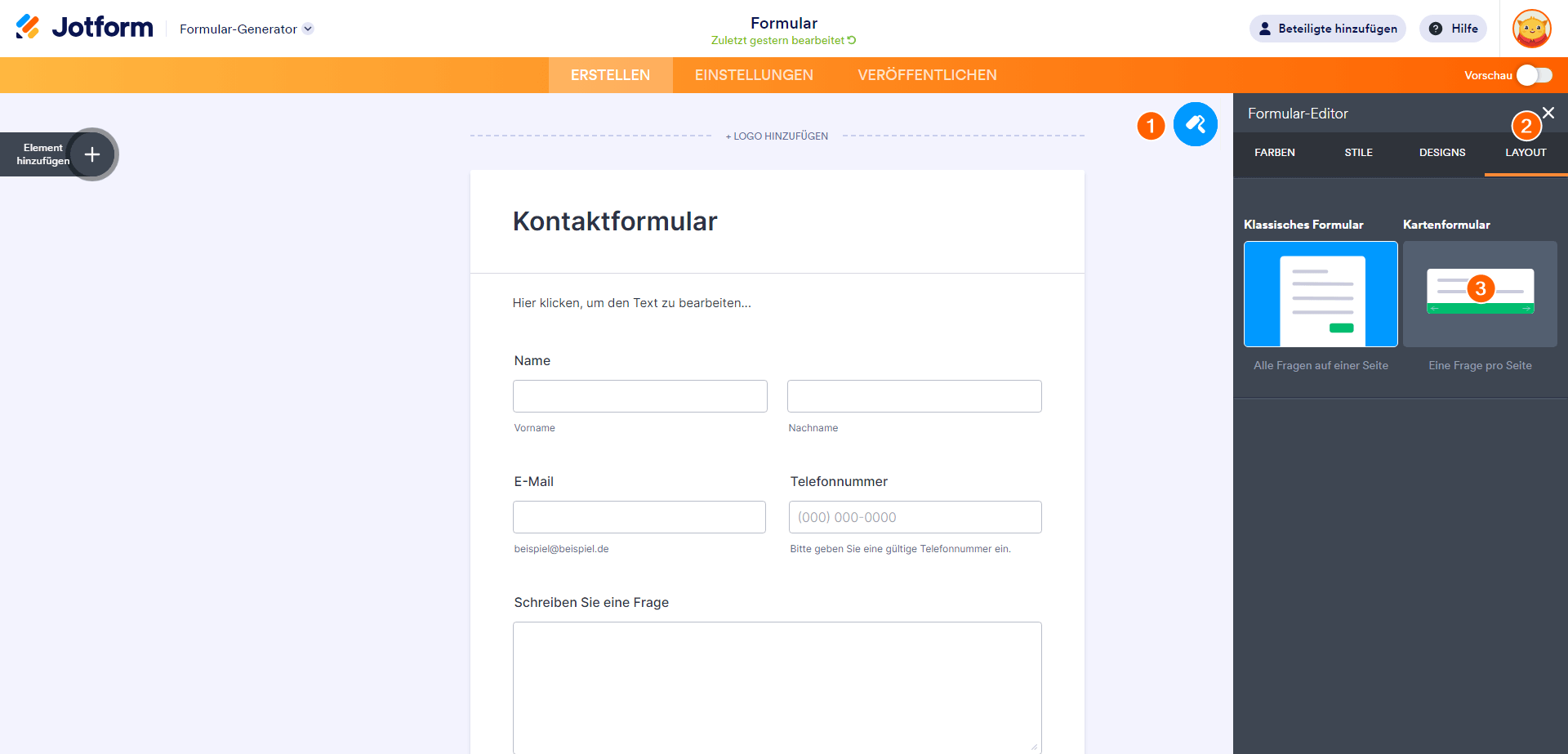 Sie können das Layout Ihres Formulars über den Formulardesigner ändern.