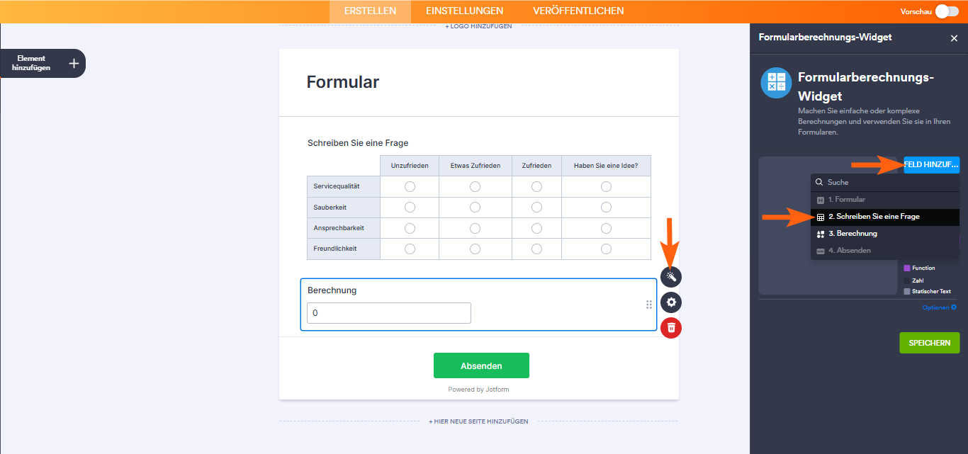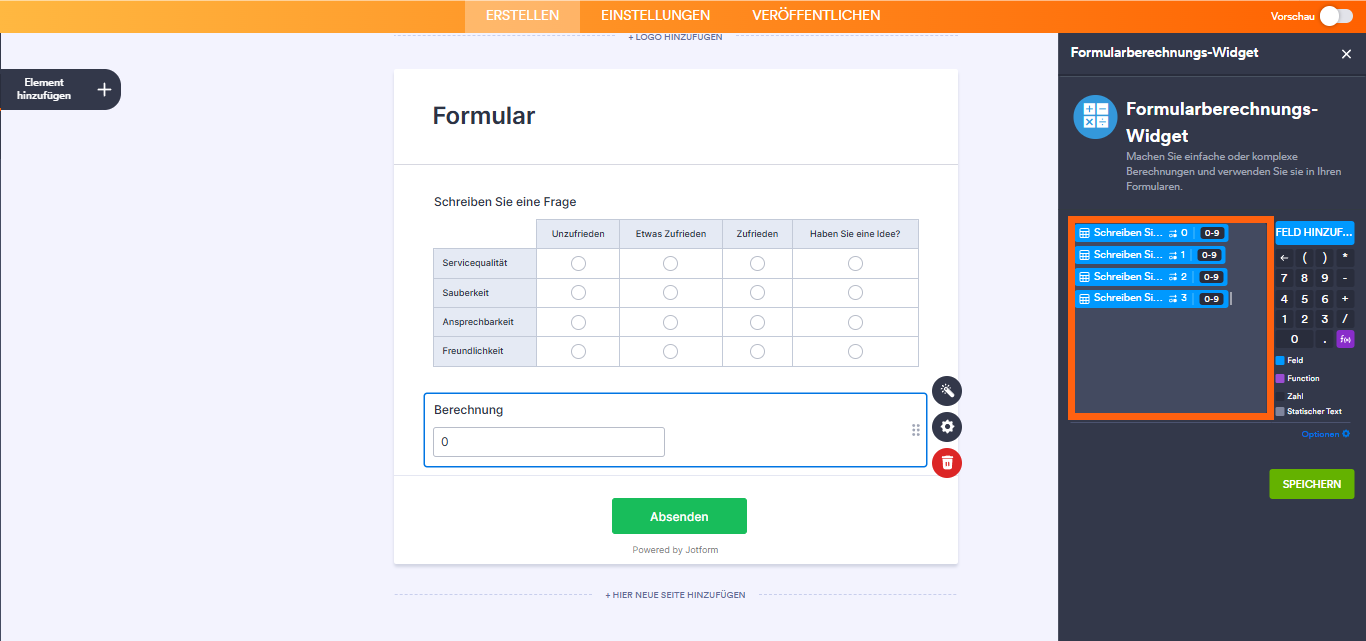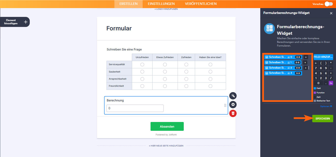- Fügen Sie für die Berechnungen ein Formularberechnungs-Widget hinzu Ihr Formular.