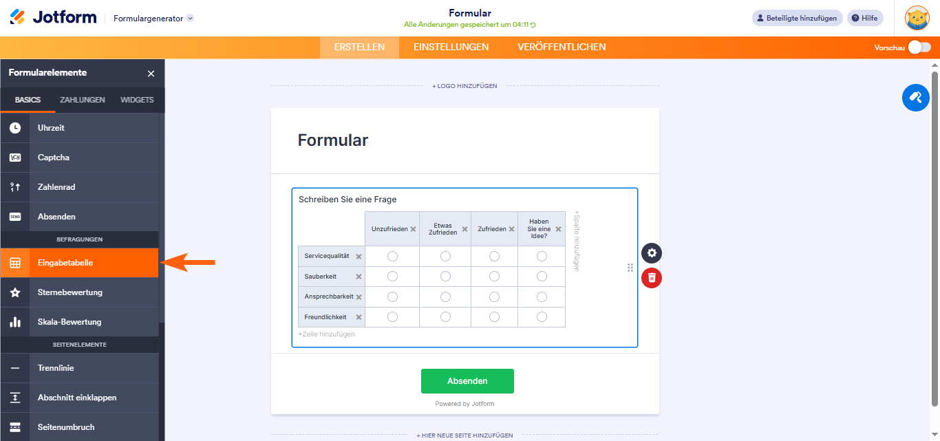 Diese Anleitung zeigt, wie Sie Berechnungen mit der Eingabetabelle und der Formularberechnung durchführen. Die Eingabetabelle finden Sie unter Grundlegend in den Formularelementen.