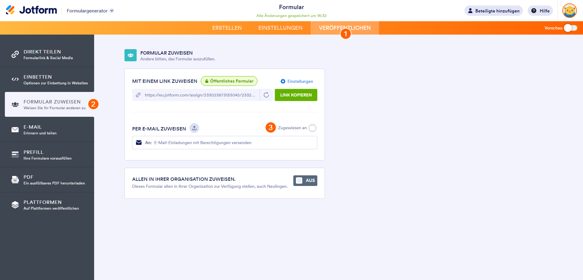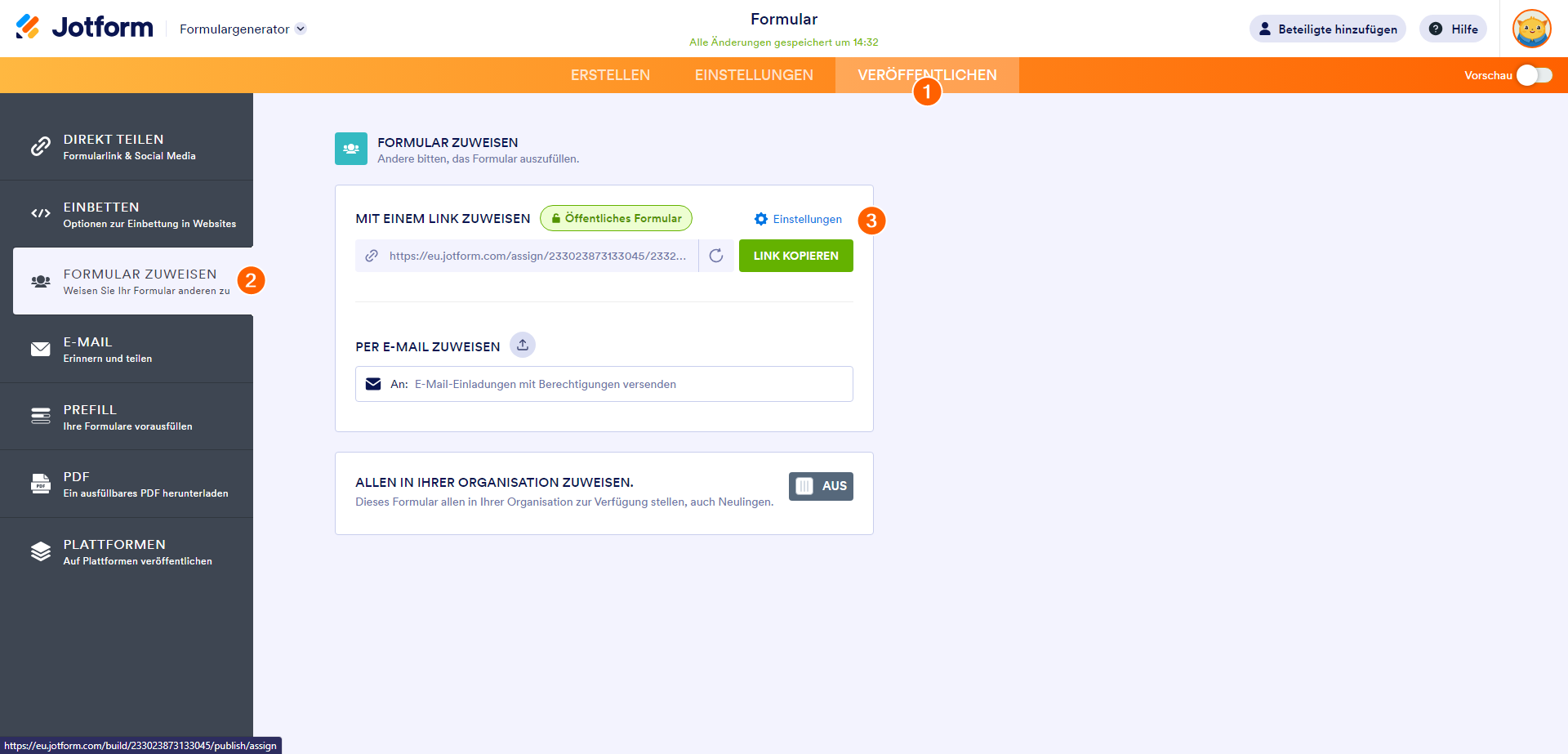 - Klicken Sie auf das Formular zuweisen in der linken Leiste.