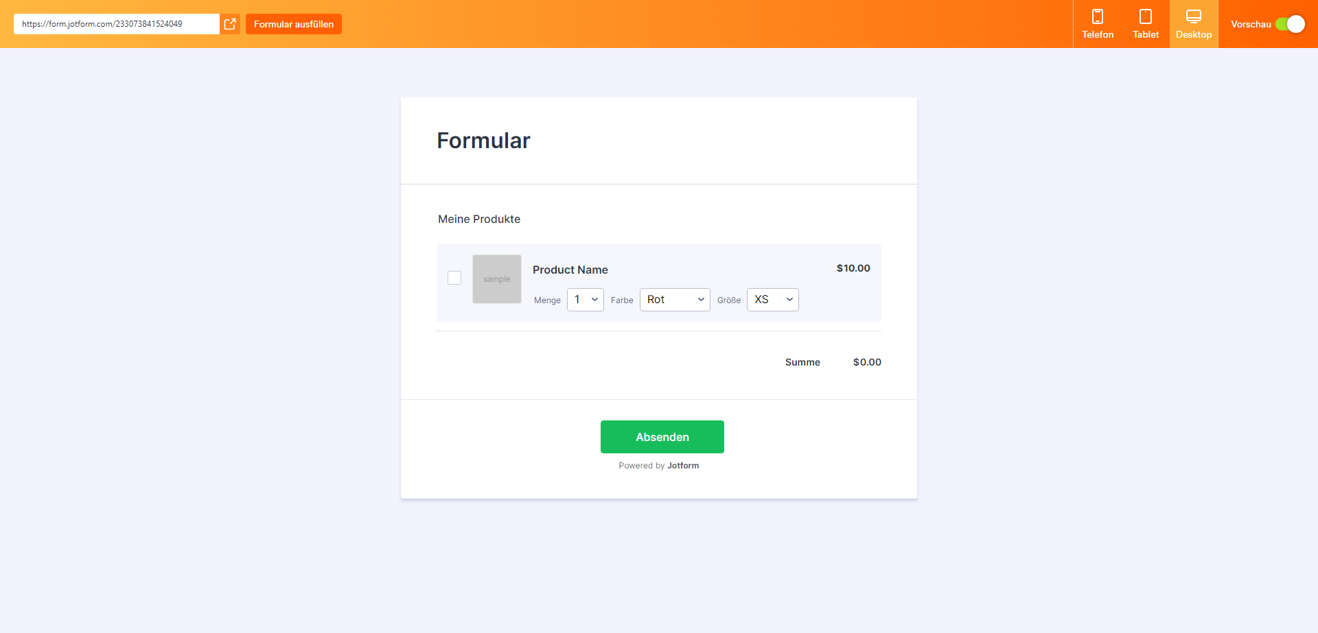 Sie können unser Demoformular hier ansehen.