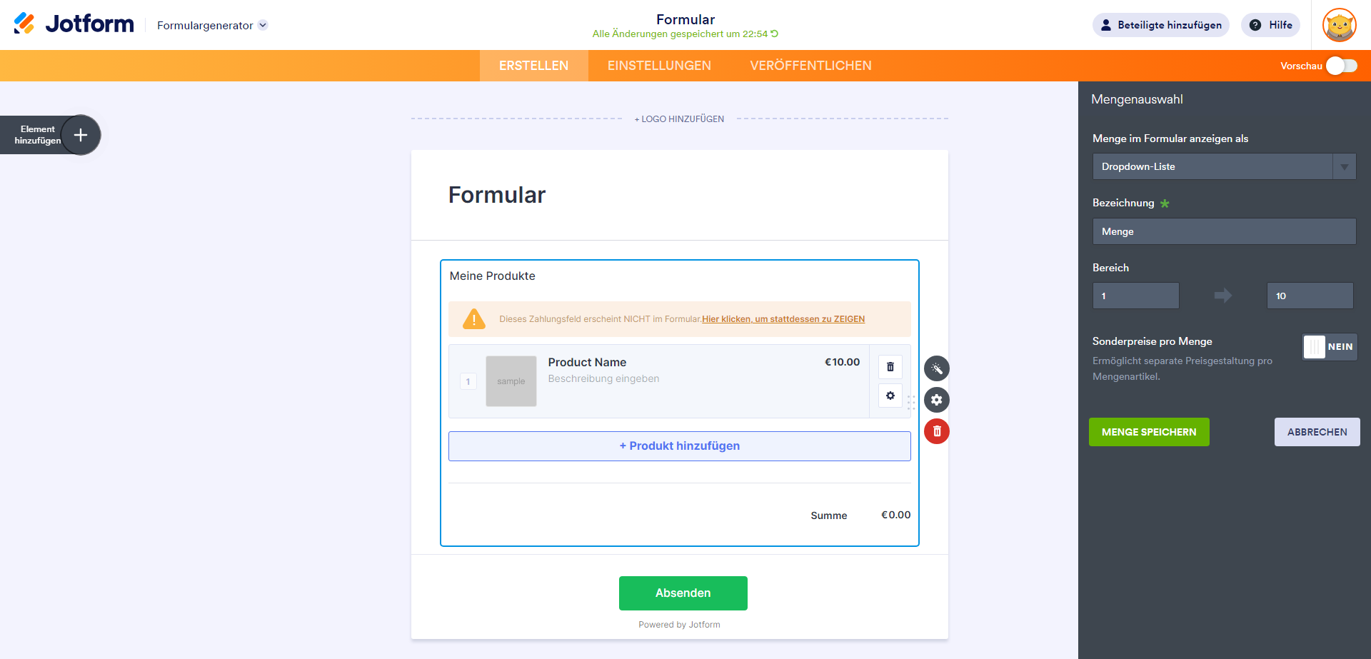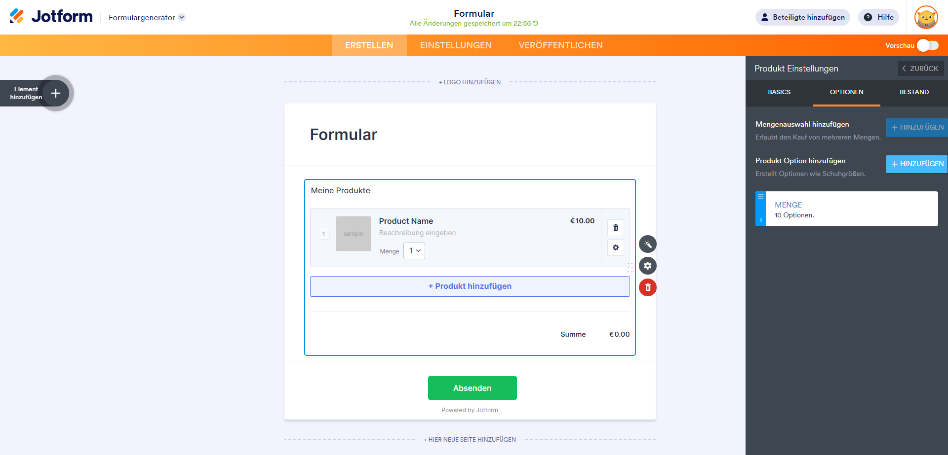 Menge und Optionen zu Ihren Produkten hinzufügen