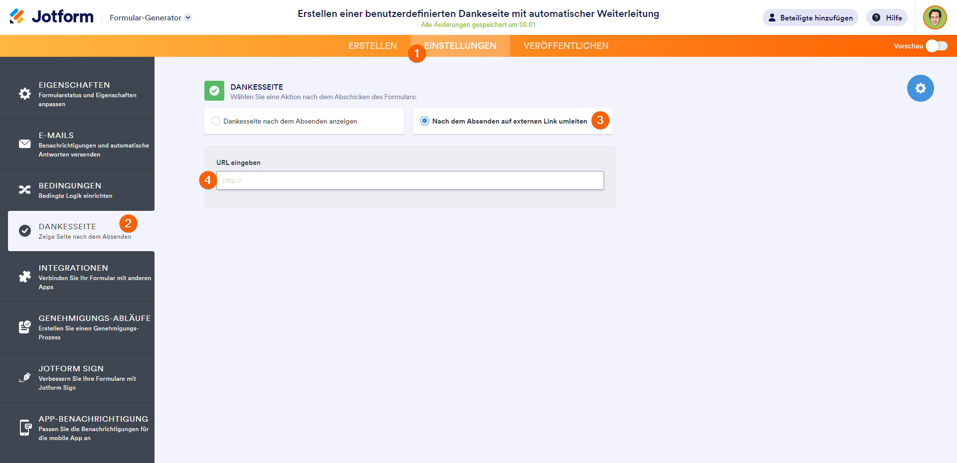 So erstellen Sie eine automatisch weiterleitende Danke-Seite