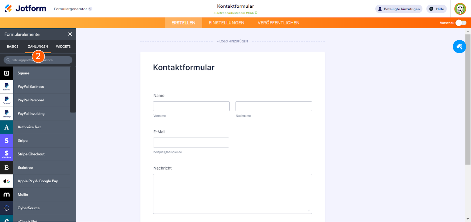 Jotforms integrierte Zahlungsgateways