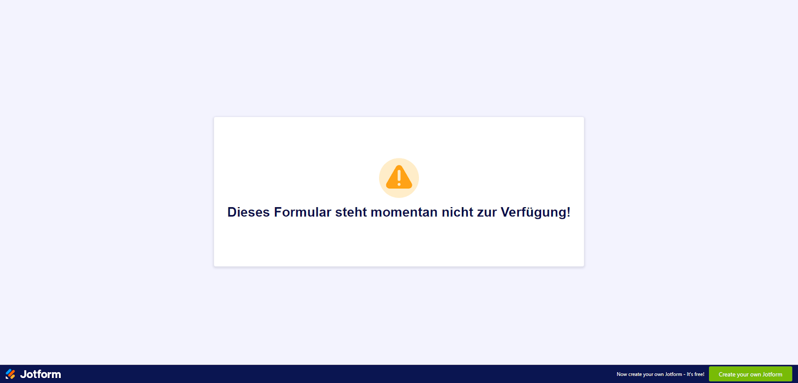 Die Fehlermeldung Dieses Formular ist derzeit nicht verfügbar! wird angezeigt, wenn das Formular deaktiviert oder gelöscht wird.