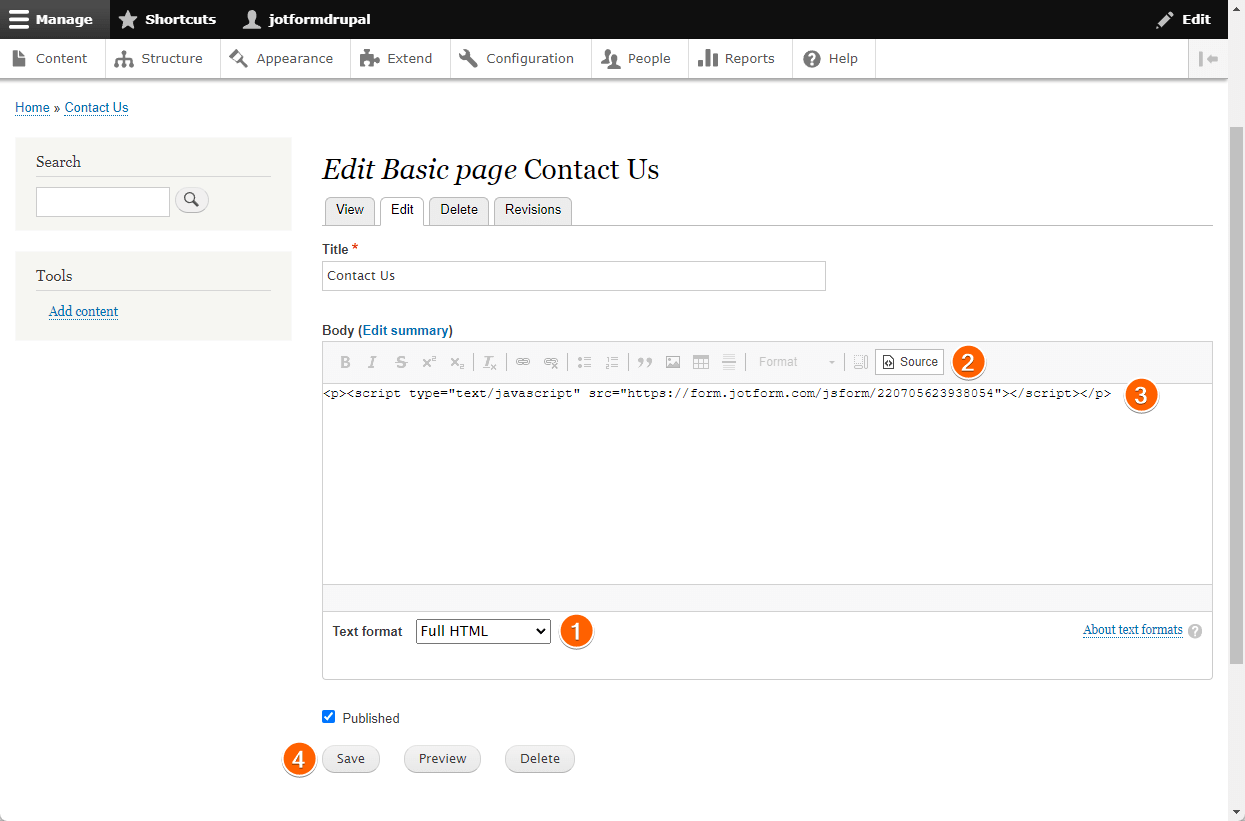 Bitte beachten Sie die folgenden Schritte, wenn Sie ein Jotform-Formular haben und es in Ihre Drupal-Website einbinden möchten.