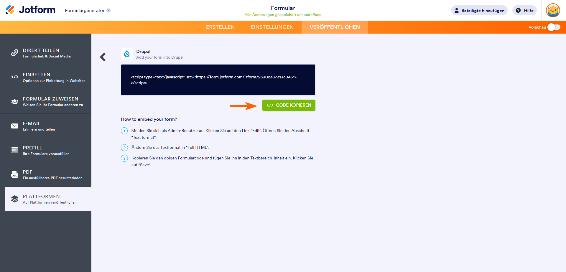 So erhalten Sie den Einbettungscode Ihres Formulars