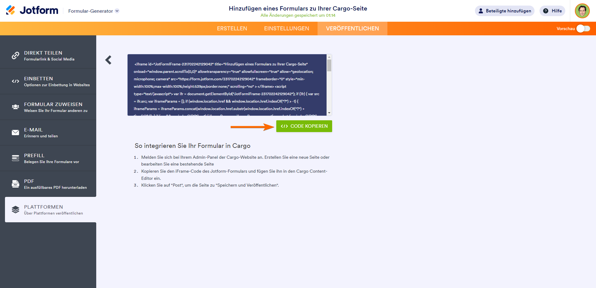 So erhalten Sie den Einbettungscode Ihres Formulars