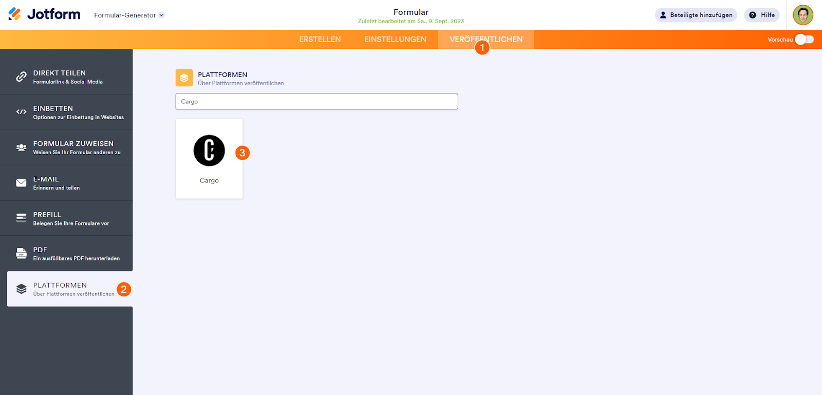 - Klicken Sie im Formular Generator oben auf Veröffentlichen.