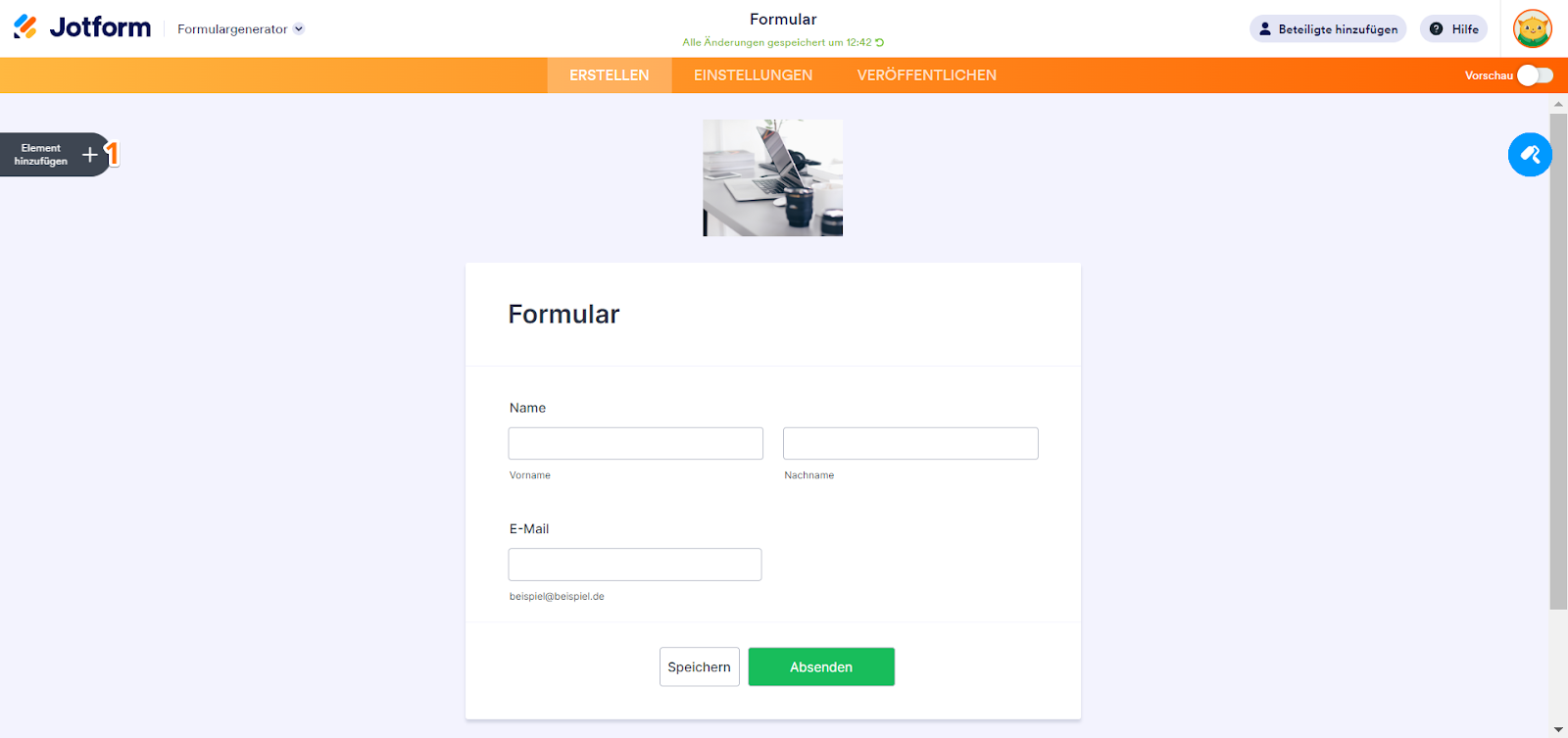 - Klicken Sie im Formular-Generator auf die Schaltfläche Formelement hinzufügen am oberen linken Bildschirmrand.