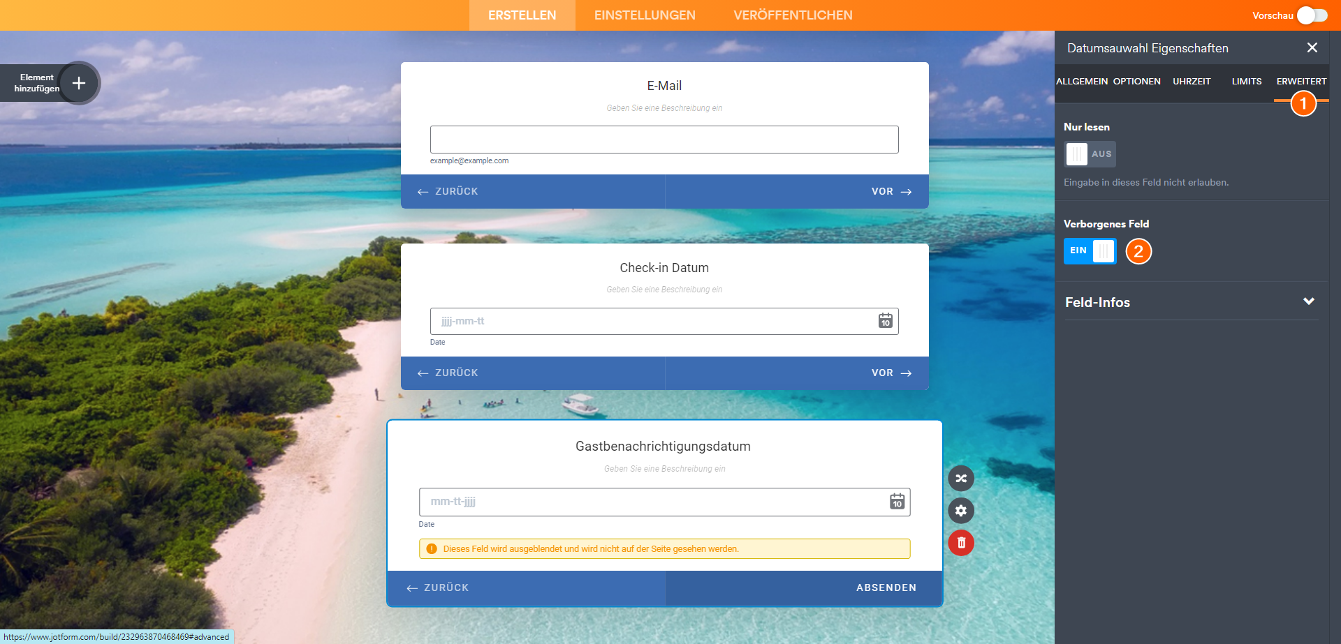 - Gehen Sie im Formular-Builder zum Reiter Einstellungen.
