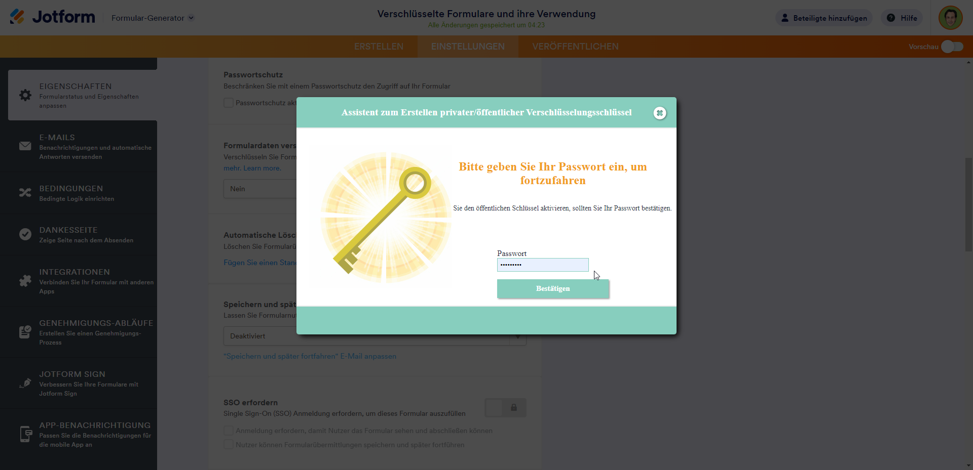 Formularverschlüsselung im Formular-Builder aktivieren