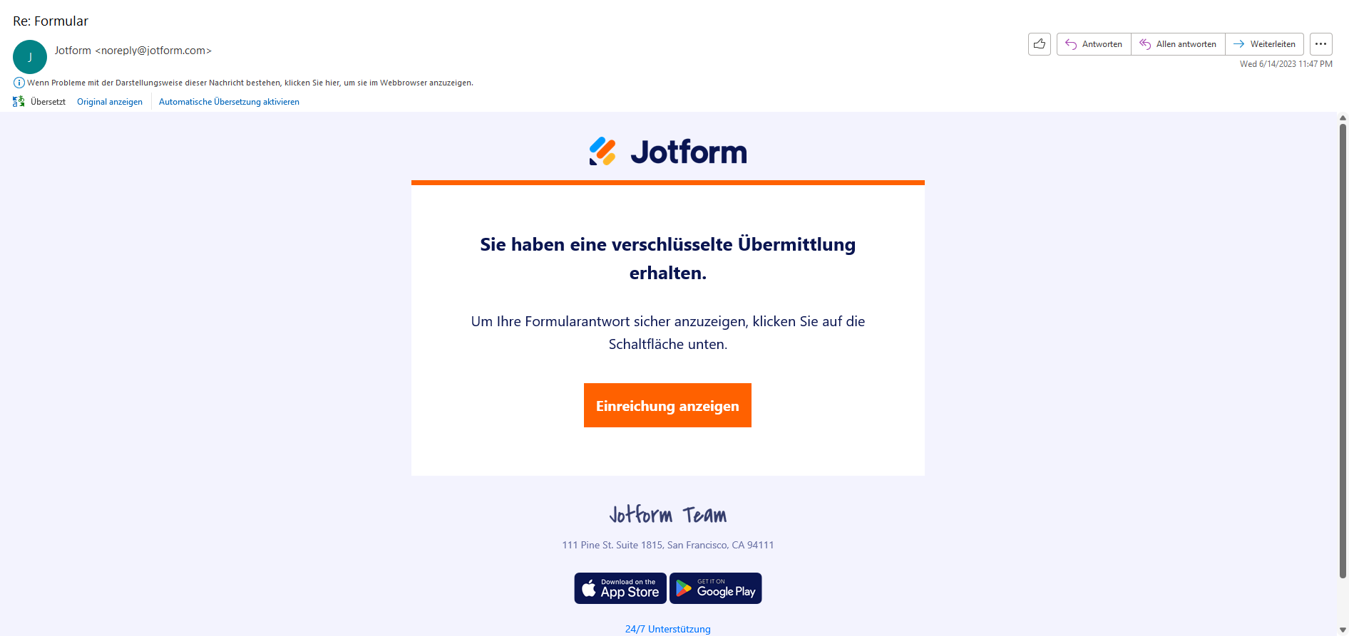 Formular entschlüsseln für den Zugriff Einreichungen
