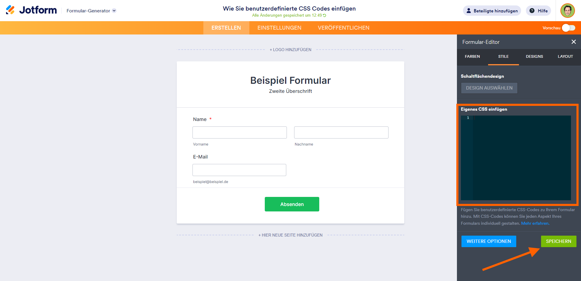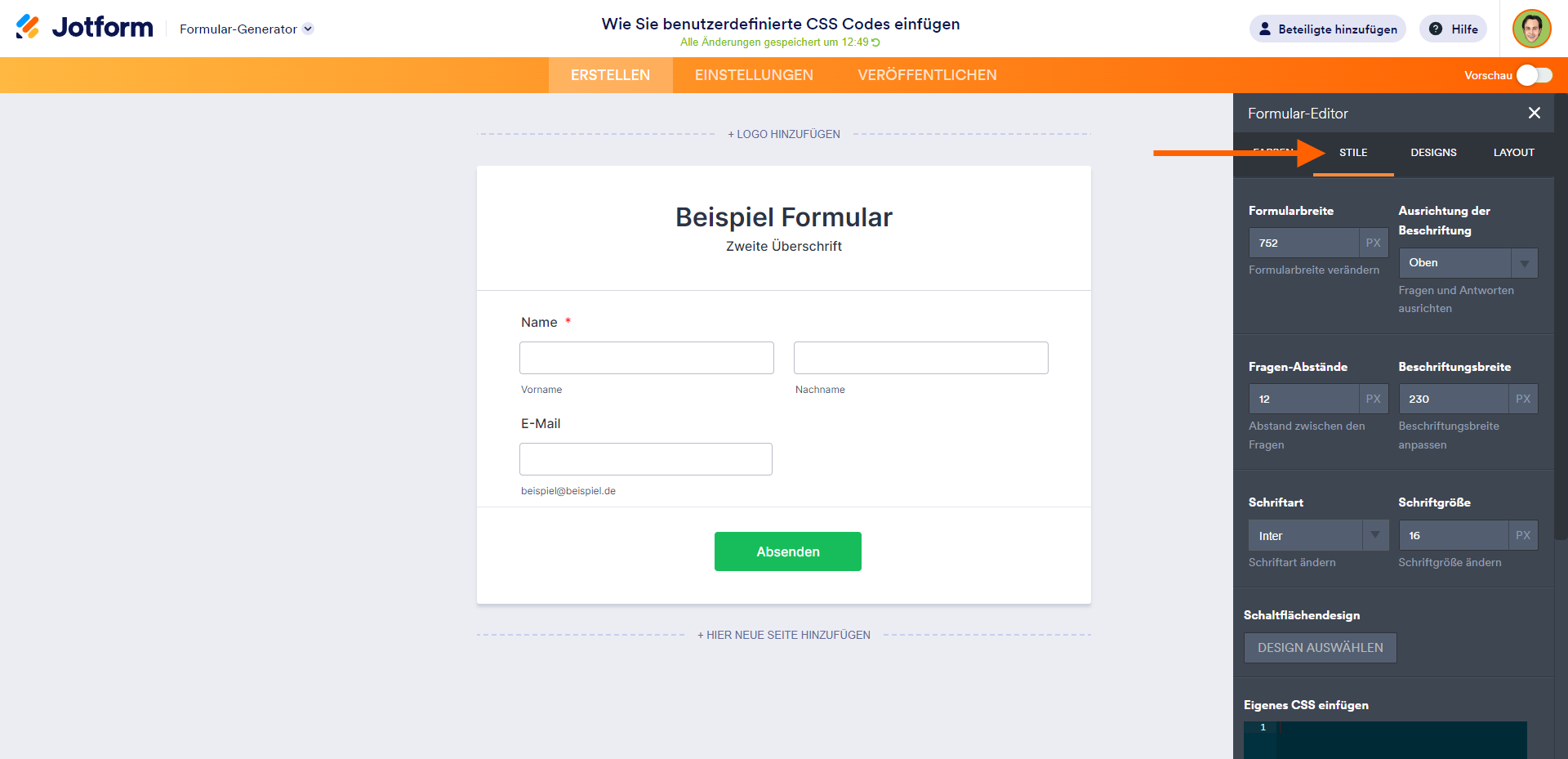 Sie können in wenigen einfachen Schritten benutzerdefinierte CSS-Codes in Ihr Formular einfügen. So geht’s: