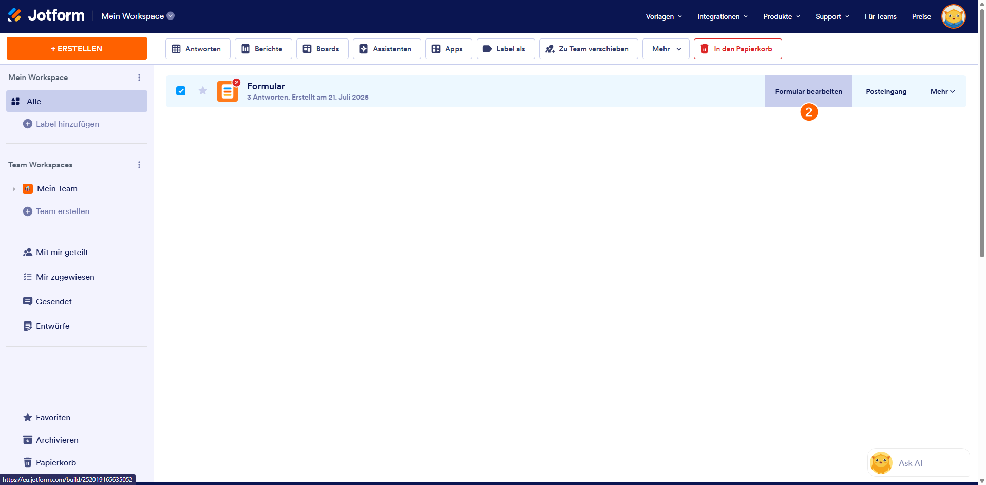 Der Formular Generator von Jotform verfügt über einen integrierten Designer, mit dem Sie Ihr Formular gestalten können, ohne eine einzige Zeile Code schreiben zu müssen. Wenn Sie jedoch über die Standardoptionen hinausgehen möchten – sei es zum Anpassen von Abständen, Ändern von Schriftarten oder Ausblenden bestimmter Elemente – können Sie Ihr eigenes CSS einfügen und so die volle Kontrolle über das Erscheinungsbild Ihres Formulars behalten.