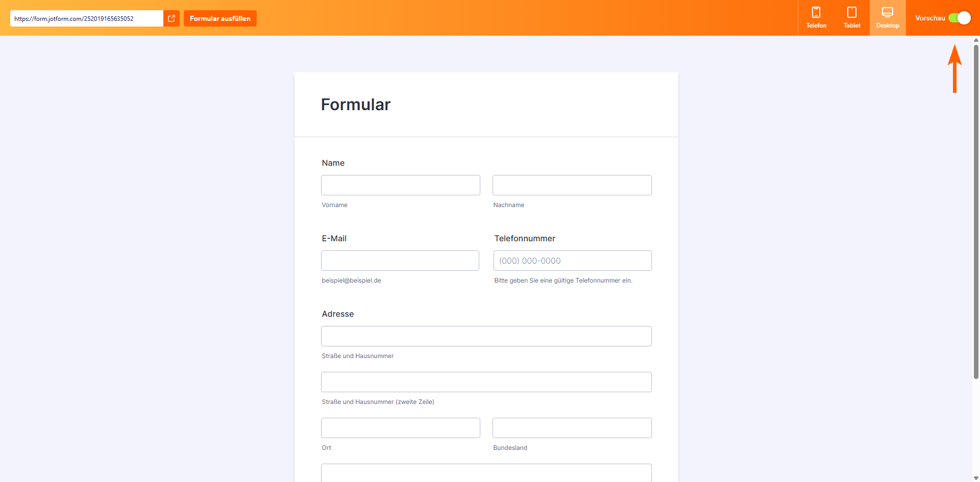 Das war’s. Jetzt können Sie den Schalter Formularvorschau oben rechts auf der Seite aktivieren, um die Live-Vorschau zu öffnen. So können Sie genau sehen, wie das Formular für Benutzer aussieht.