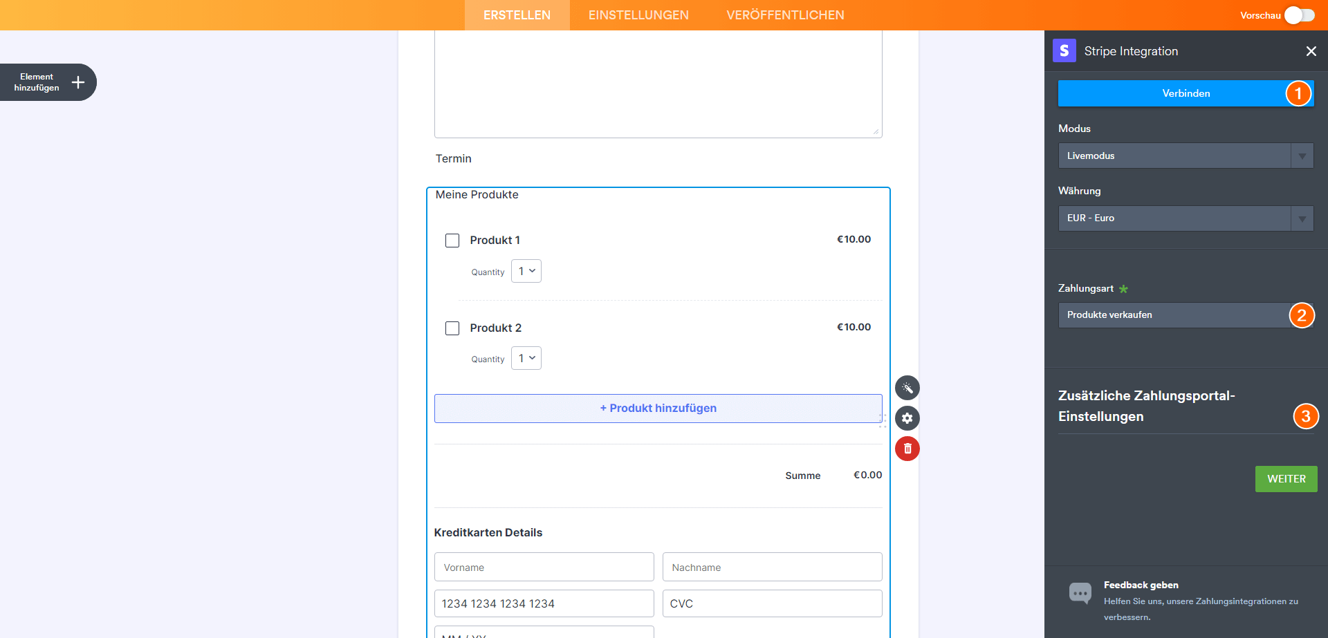 - Klicken Sie nach Abschluss Ihrer Eingaben auf Weiter.
