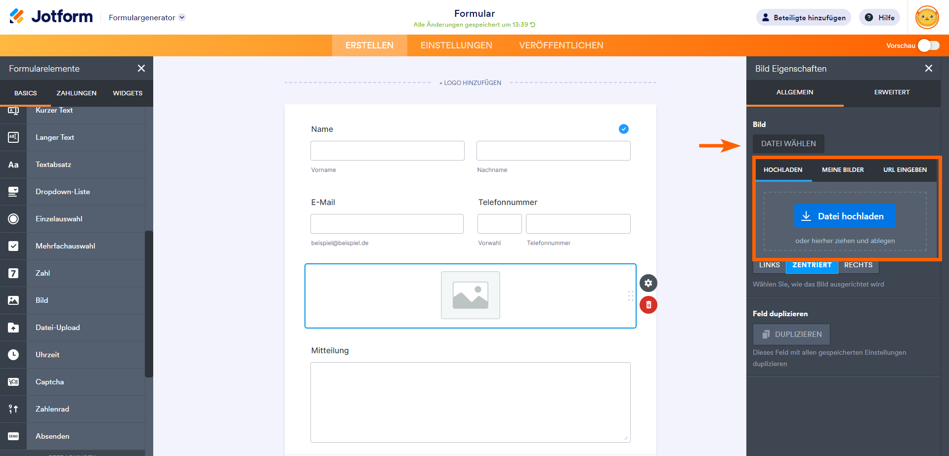 Ob Sie ein neues Formular erstellen oder ein bestehendes aktualisieren möchten – das Bild-Element lässt sich in wenigen Schritten hinzufügen und einrichten.