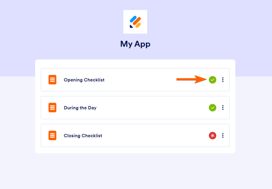 Mit Jotform Apps können Sie eine App erstellen, die als Checkliste fungiert. Sie können beispielsweise eine Checkliste für tägliche Aufgaben, eine Onboarding-App für neue Mitarbeiter oder eine Reihe von Aufnahmeformularen erstellen, indem Sie mehrere Formulare verwenden und jedes ausfüllen lassen.