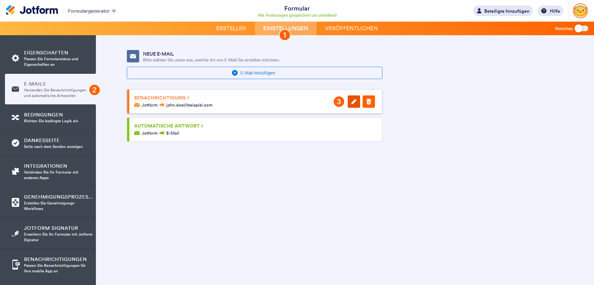 - Gehen Sie im Formular-Builder zum Reiter Einstellungen.