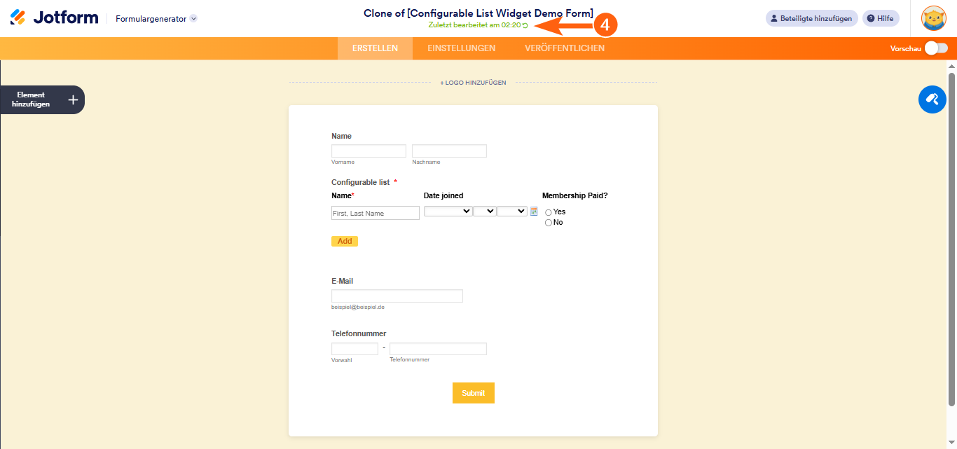 Das war’s. Der Revisionsverlauf ist sowohl im Formular Generator als auch in den Jotform Tabellen verfügbar. Weitere Informationen finden Sie in unserer Anleitung So zeigen Sie Einreichungsrevisionen an.