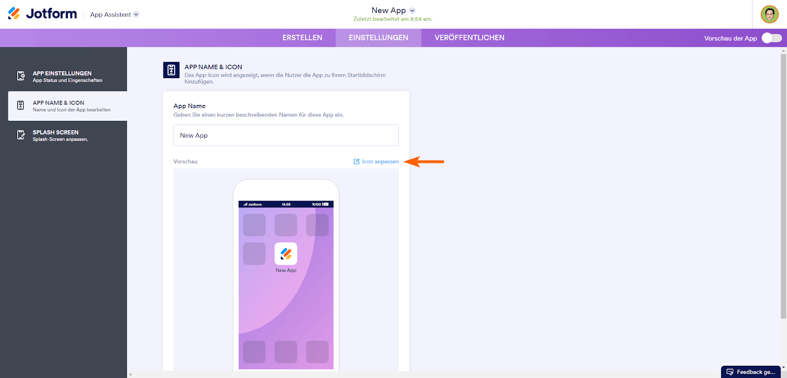 Mit Jotform Apps können Sie den Namen und das Symbol Ihrer App anpassen. Verwenden Sie ein benutzerdefiniertes Bild oder wählen Sie eines der verfügbaren Symbole für Ihre App.