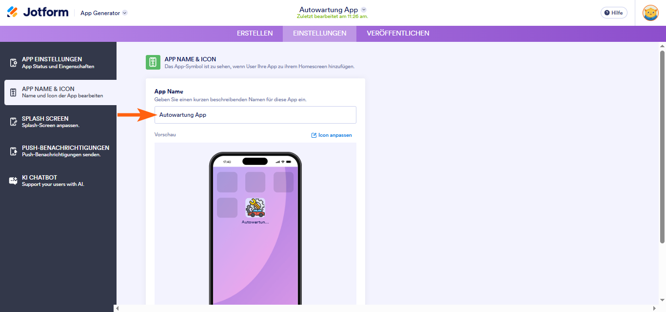 So ändern Sie den Namen und das Symbol Ihrer App: