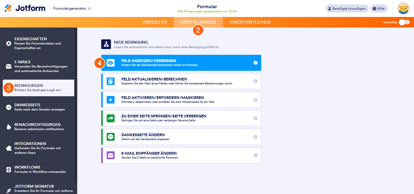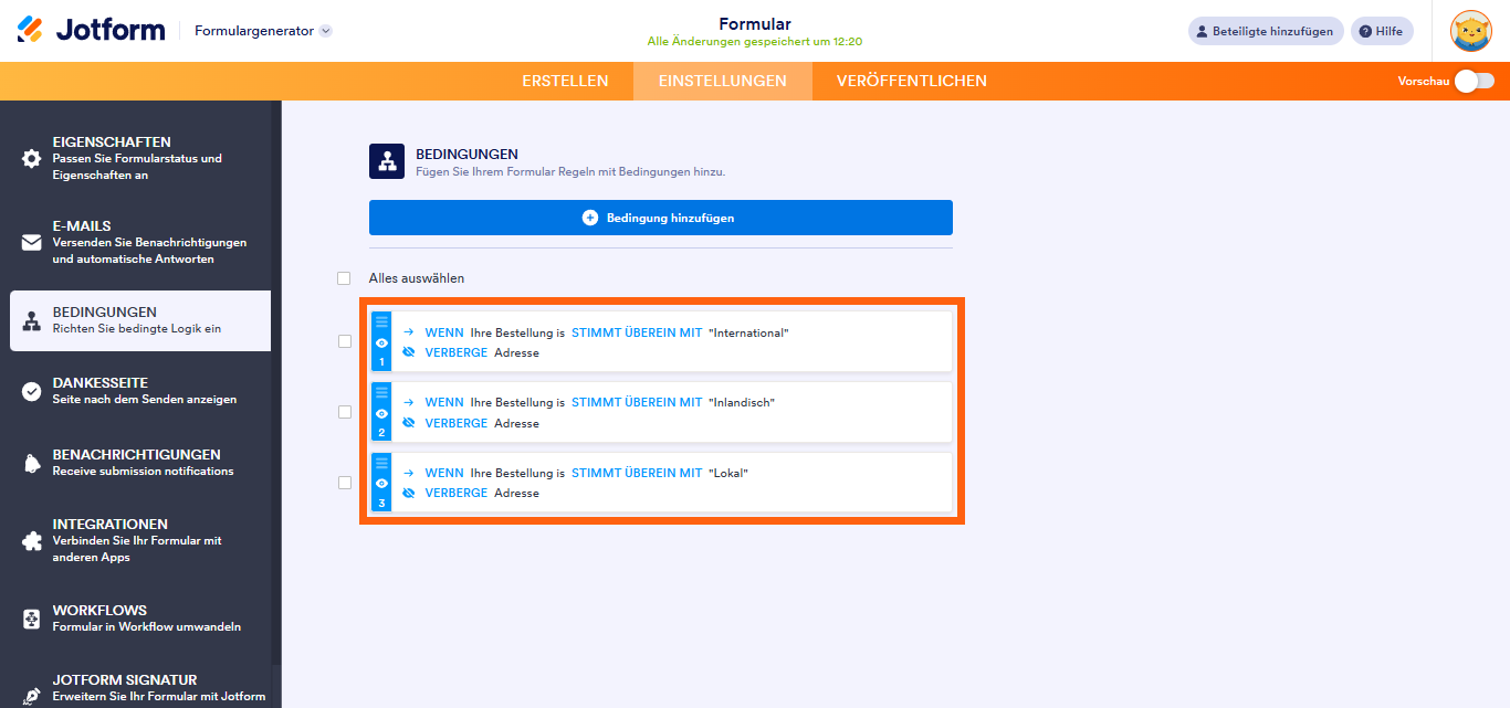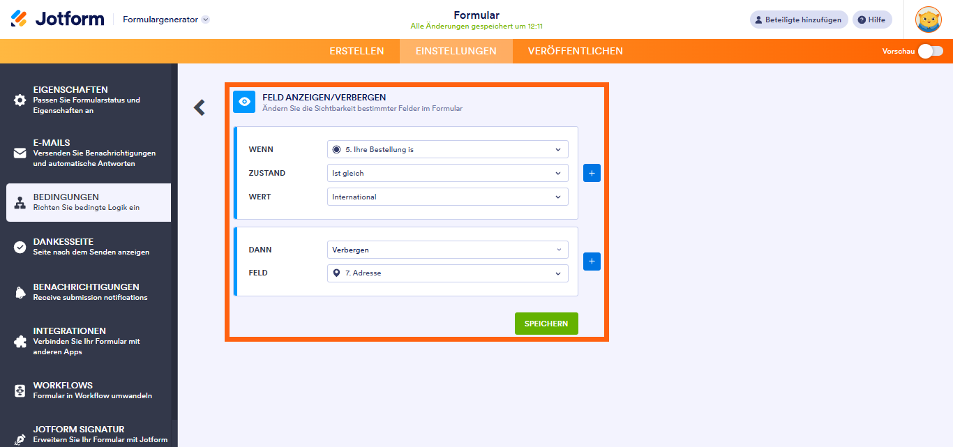 Zuletzt sollten Sie für jedes Adressfeld eine Ein-/Ausblendbedingung einrichten.