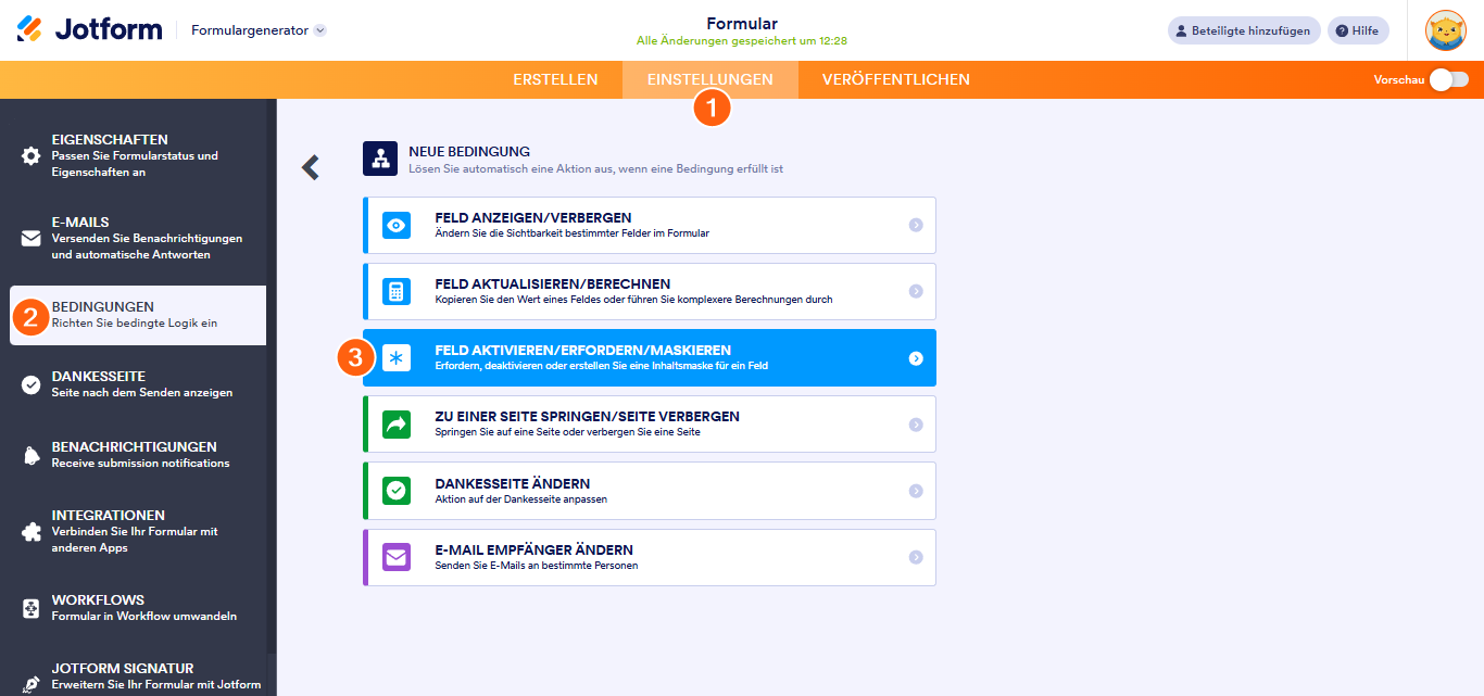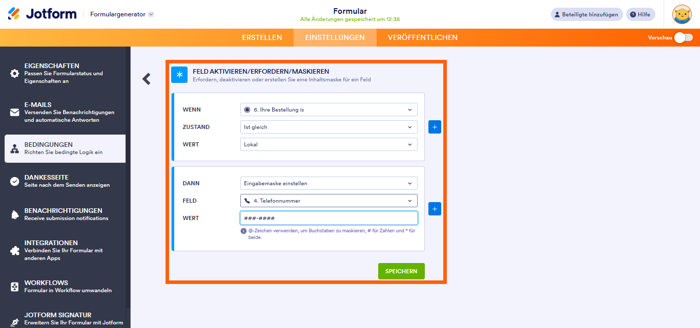 - Führen Sie die Schritte erneut aus, um für jede Maskierung in Ihrem Formular dieselben Bedingungen hinzuzufügen.