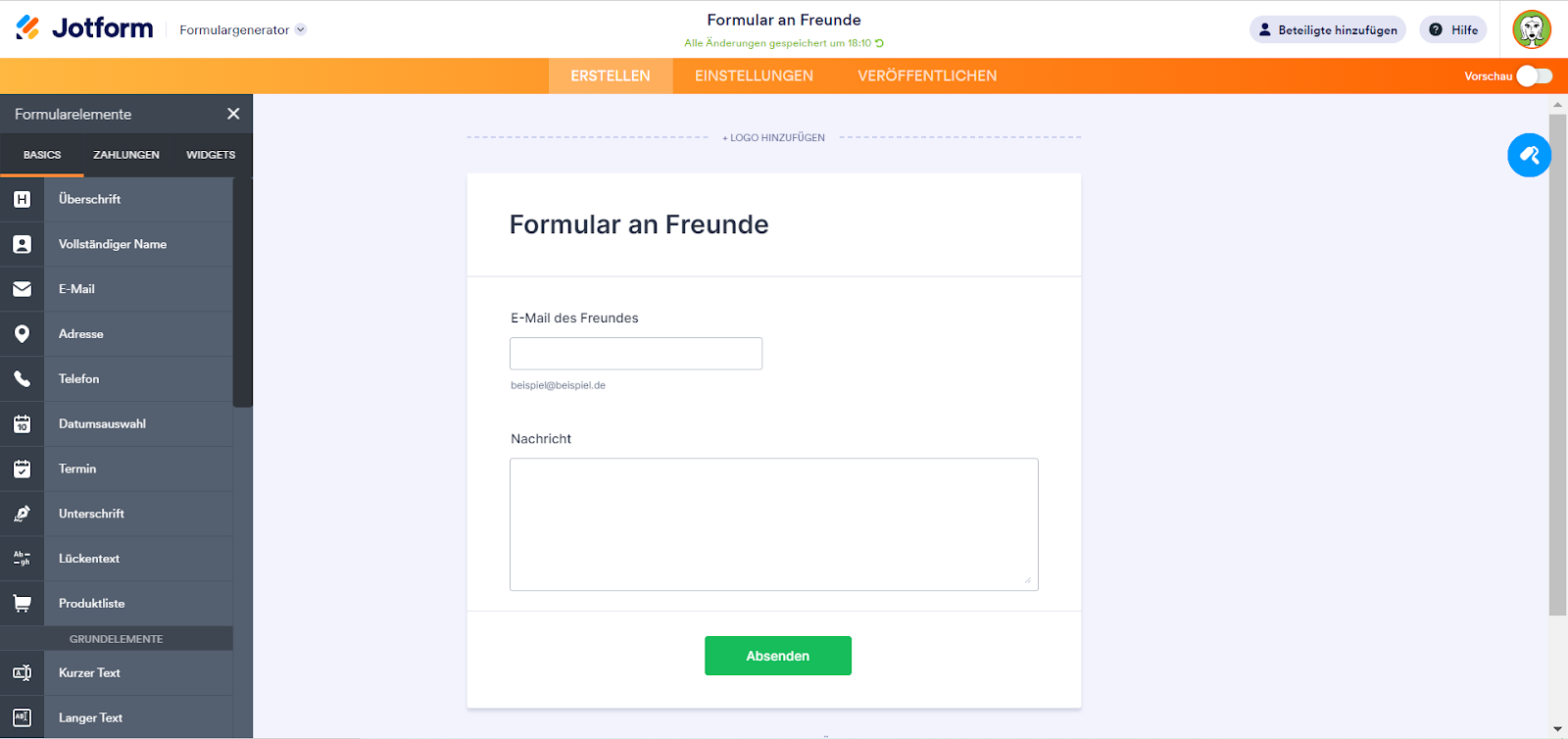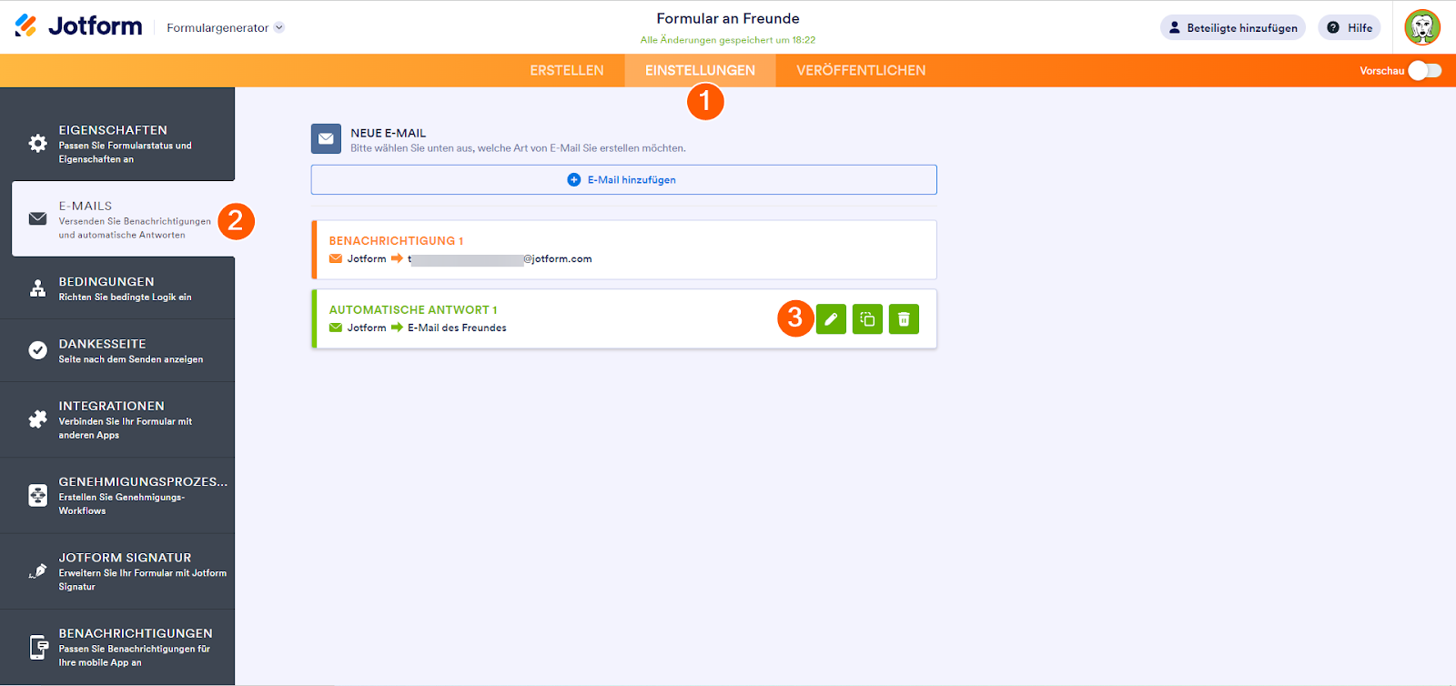 - Gehen Sie im Formular Generator auf die Registerkarte Einstellungen.