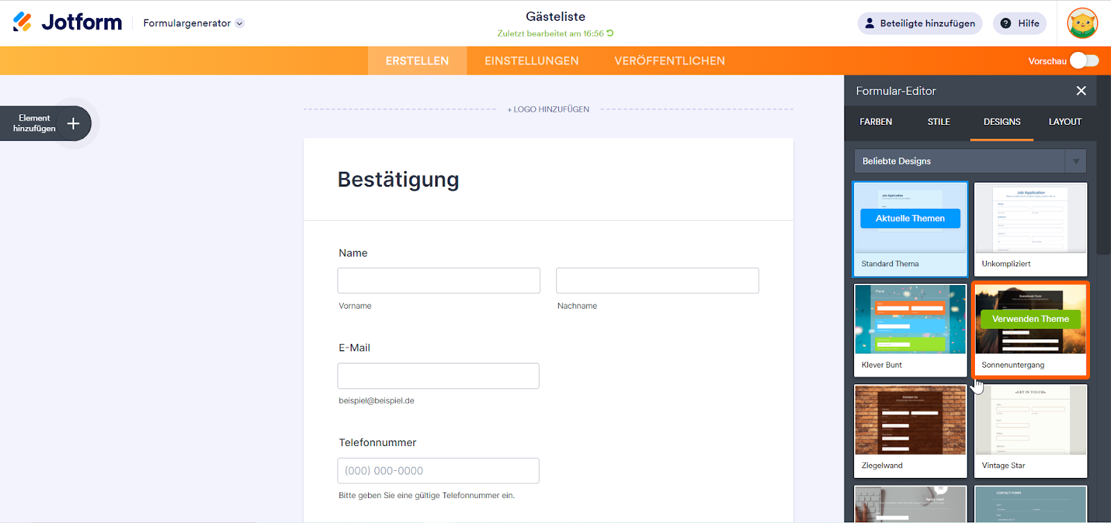 Ein Design innerhalb des Formular-Generators anwenden