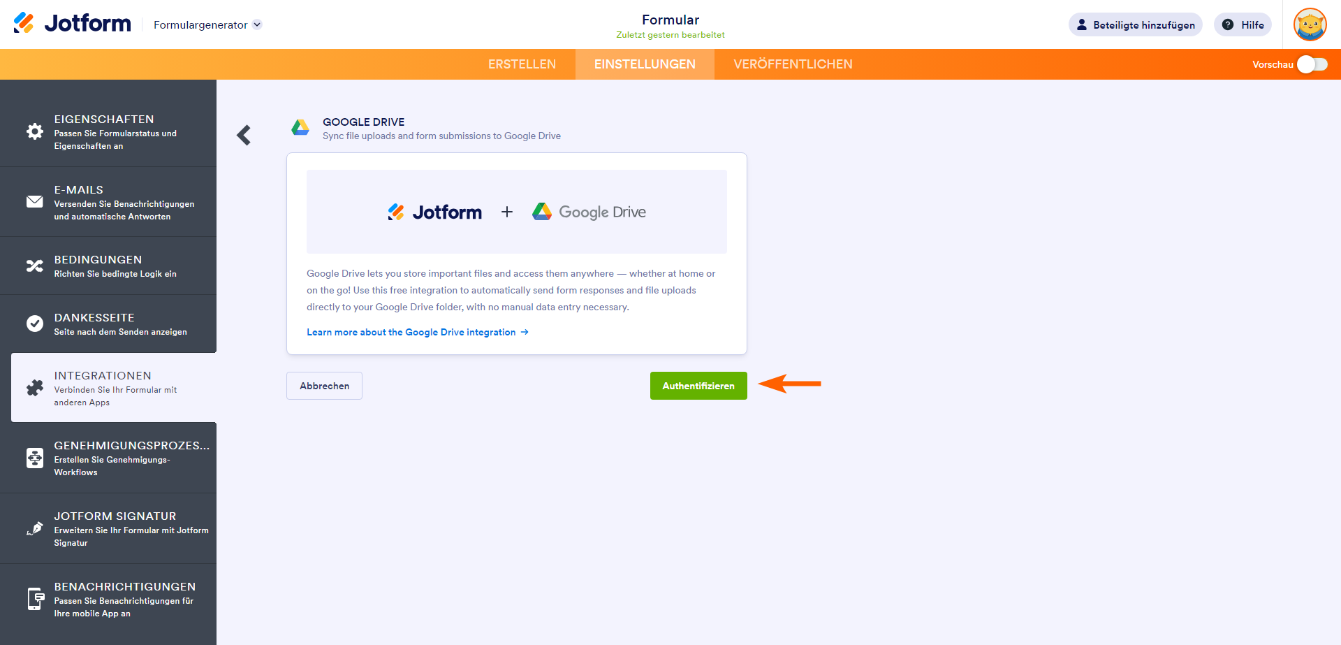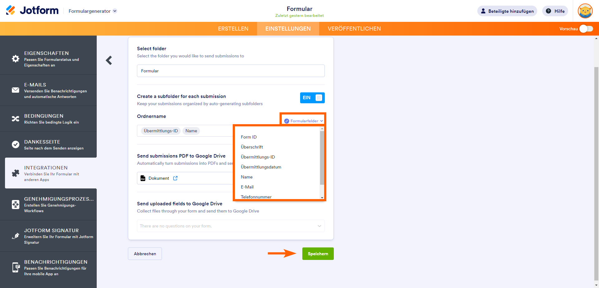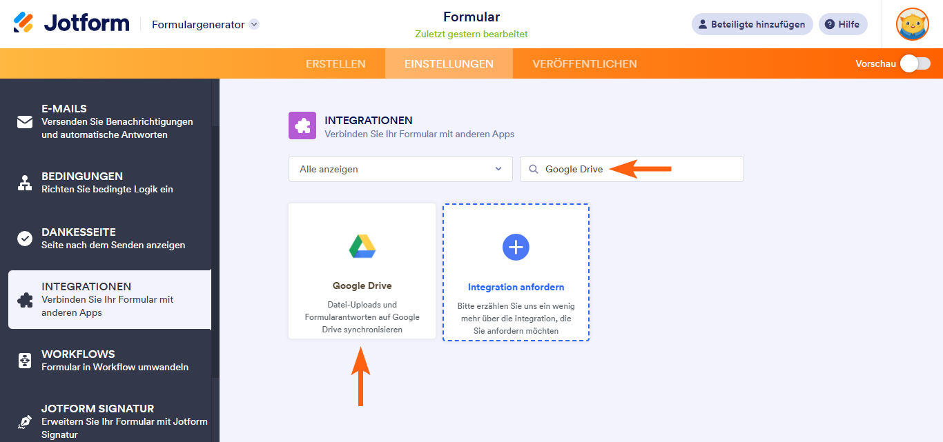 So integrieren Sie Ihr Formular in Google Drive