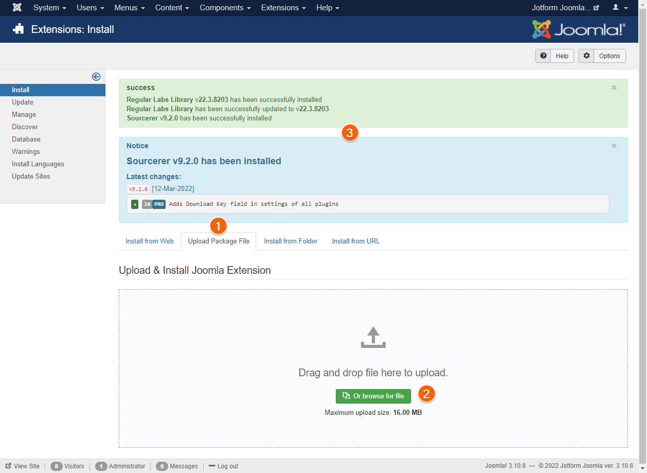 - Melden Sie sich auf der Seite Ihres Joomla-Administrators an.