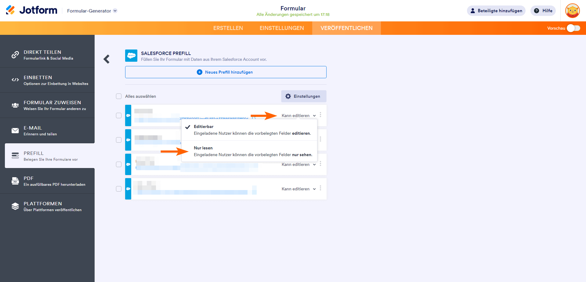 Salesforce Prefill ermöglicht Ihnen, Ihre Formulare dynamisch mit Daten aus Ihrem Salesforce CRM vorzufüllen. Diese Funktion füllt Formularfelder automatisch mit Informationen aus Ihren Salesforce-Formularen und macht das Ausfüllen so schneller und präziser.
